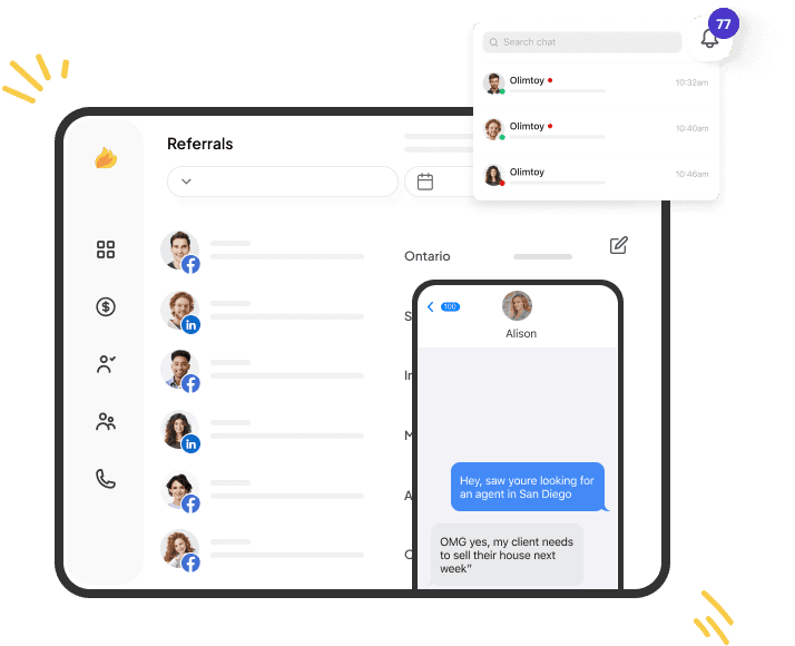 Gone are the days of manually searching social media groups and competing in referral fan clubs. Referrals instantly alerts you to relevant posts, meaning all you’ve got to do is contact the referring agent. Enjoy more time building client relationships and closing deals, and less time lost in the crowd.